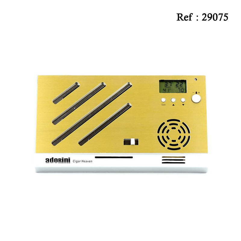 Ce système d'humidification électronique 2ème génération Adorini conçu pour les caves à cigares est munit d'un système de ventilation silencieux mais puissant. Il vous permettra le réglage précis du taux d'humidité de votre cave.