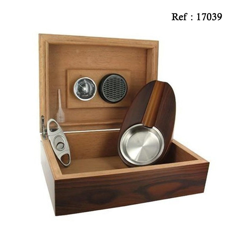 Avec cette cave à cigares, un cendrier et un coupe cigare assortis vous seront également livrés.
